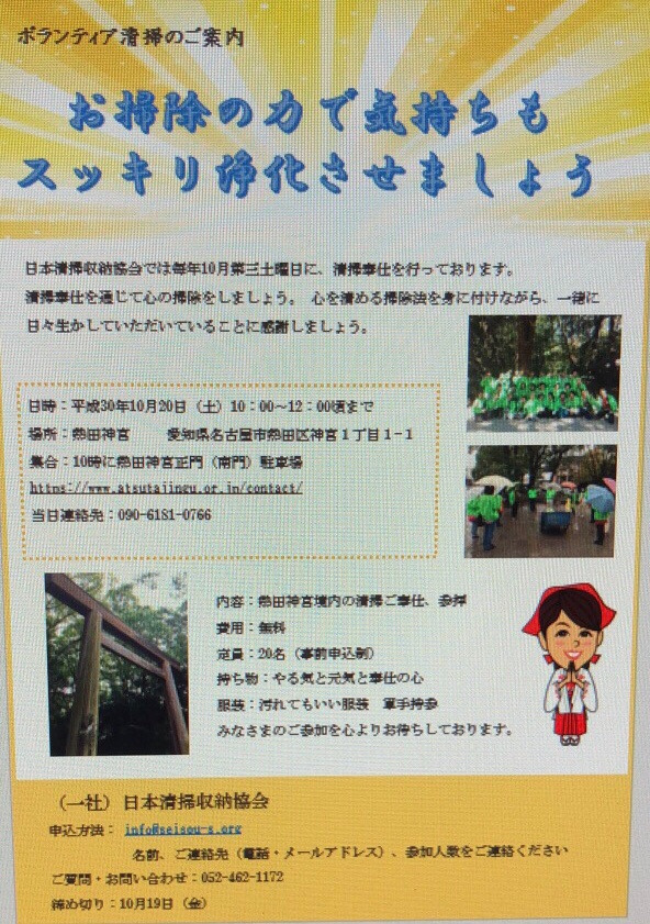熱田神宮で一緒に清掃奉仕をする人を熱烈募集中!!!
