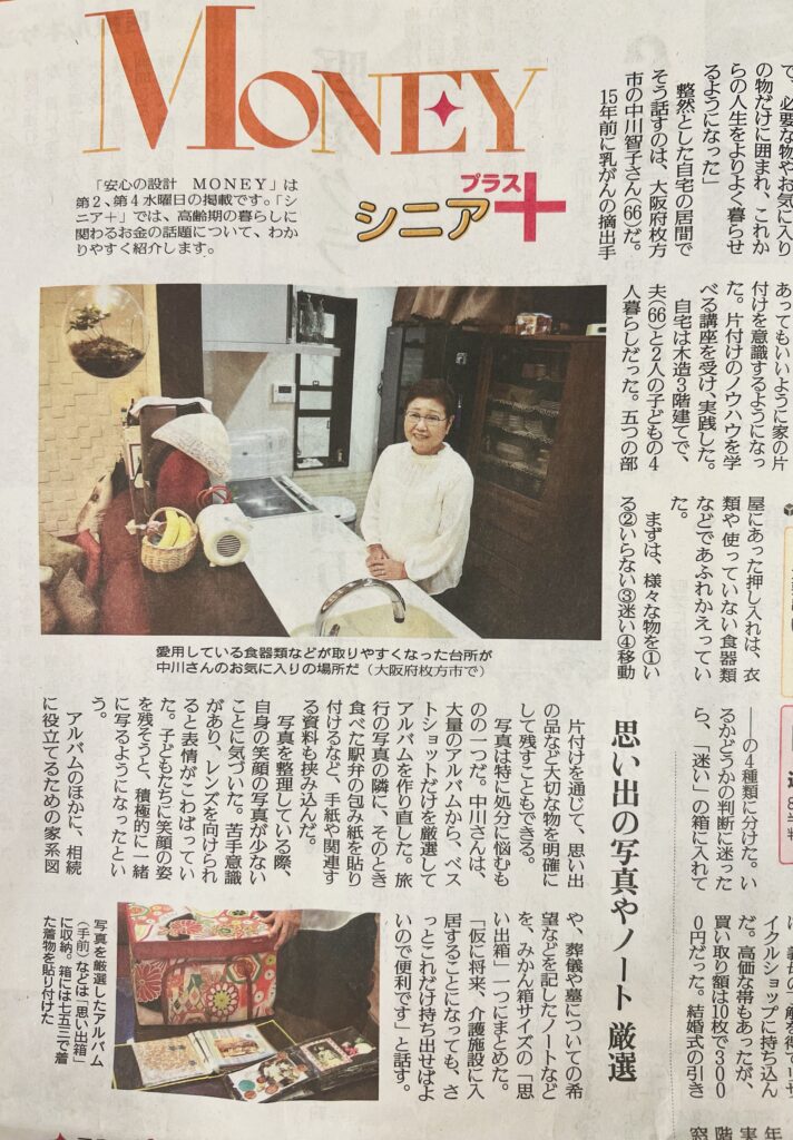 今回ご紹介いただいたコーナーは「Moneyシニアプラス➕」生前整理のお片付けはお財布にも心にもお得なんです!