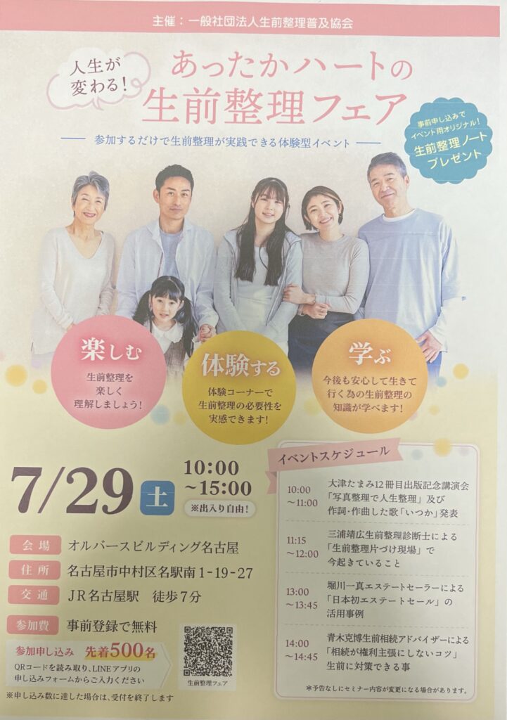 7月29日名古屋で開催する生前整理フェア。